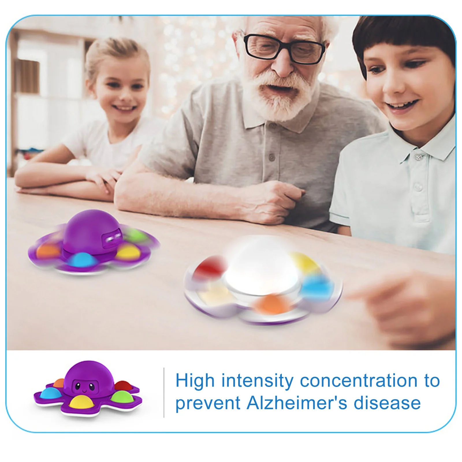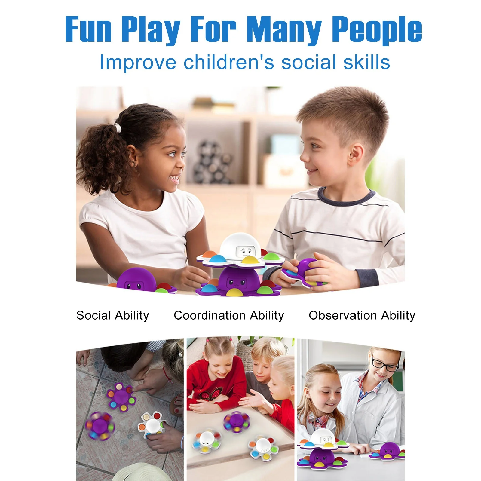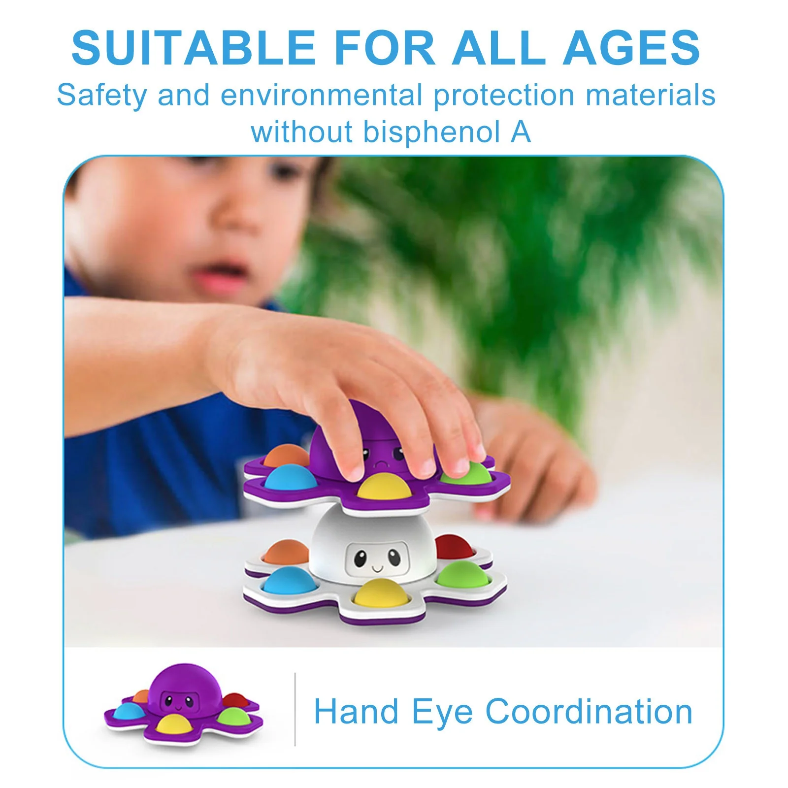 Design: Chic face-change octopus shape+Pressable bubbles+Spinning top,a combination of fun and creativity.