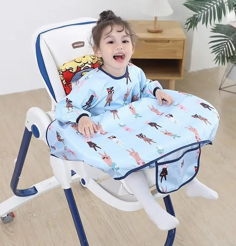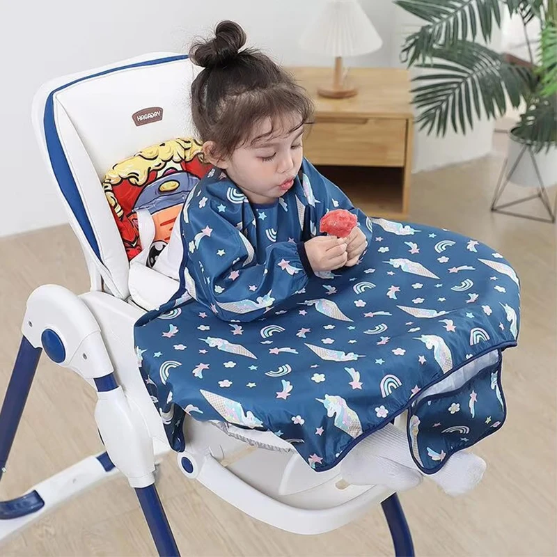Waterproof Overalls Coverall Baby Feeding Table Highchair Baby Weaning Bibs Smock Apron Attaches to Highchair Long Sleeve Bibs