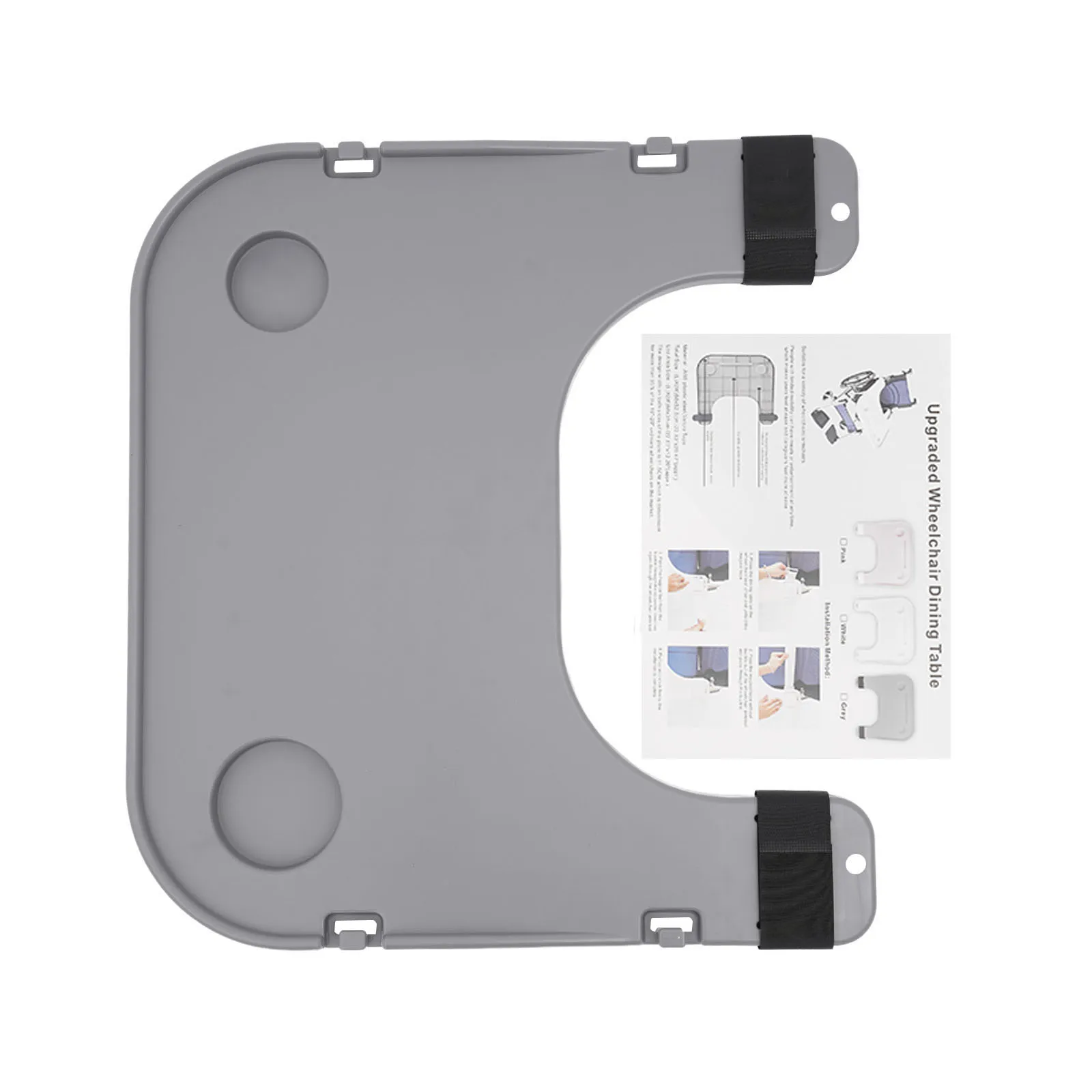 🍽️This reinforced ABS wheelchair table board establishes a secure platform for dining and daily tasks on mobility chairs. Attach it to armrests (49.5-52cm spacing) using adhesive tapes, leveraging dual cup holders (7cm/9cm) and 1.5cm stoppers to contain spills. The 58x53cm surface withstands 80kg loads for electronics or meal trays while adjustable positioning enhances posture. Four hooks organize essentials, and the varnish-treated gray finish enables effortless cleaning with a damp cloth in care facilities or homes.